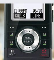 Four programmable LED backlit line keys right on the cordless desk set providing line key appearance.
