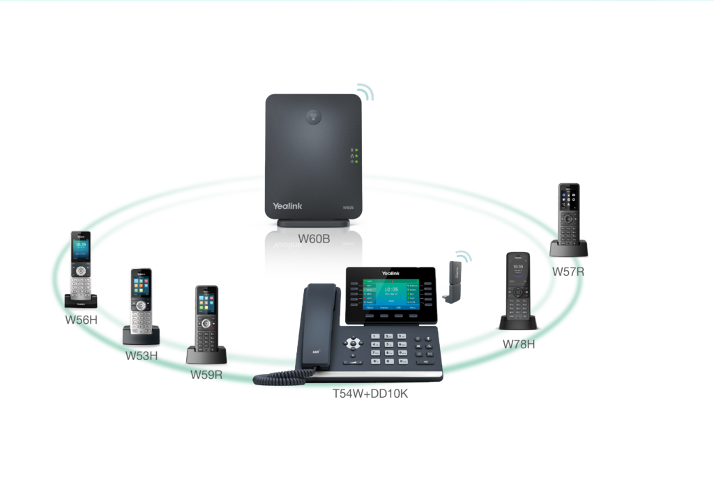 Meanwhile, Yealink W70B supports up to 10 DECT handsets in total at the same time, such as Yealink W53H/W56H/W59R/W73H/CP930W/CP935W/T54W+DD10K, meet the demands of various scenarios in the DECT environment.