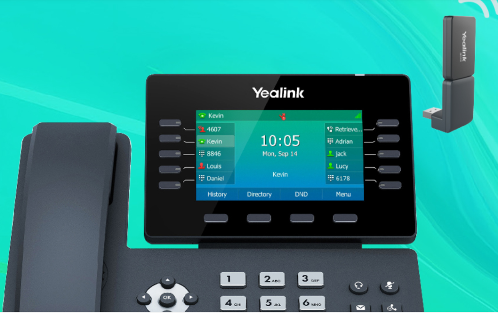 The Yealink New T5 Business Phone Series supports DECT handset compatibility via a DECT dongle Yealink DD10K, up to 4 cordless handsets. Seamless switching of calls between the desktop phone and the cordless DECT handset.