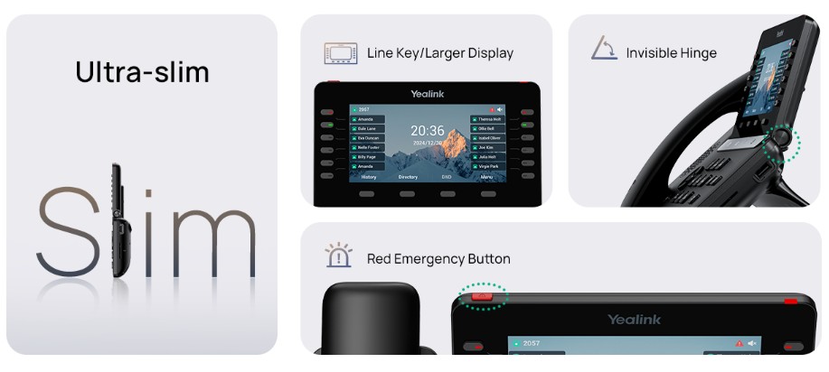 invisible hinge, emergency button, line keys and antimicrobial materials, fits into